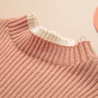 This girls’ sweater is available in three beautiful colours: Cream White, Flamingo Pink & Sky Blue.